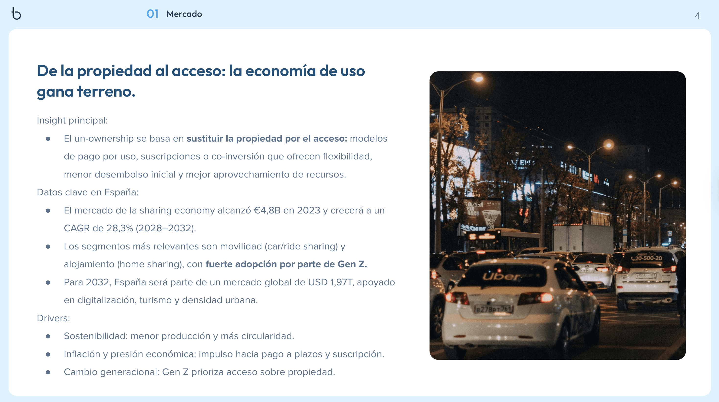 Este micro report analiza cómo el un-ownership está transformando los modelos de consumo, inversión y acceso, desplazando la propiedad tradicional hacia esquemas basados en uso, suscripción y co-inversión: